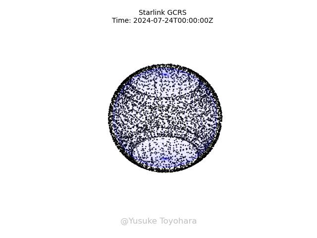 スターリンクの位置情報だけを抜き取ってプロットしたのが下の図です。この時からまた増えていると思います。地球の取り囲み方がすごいです。これでは、宇宙へ飛び出す際、どれかにぶつかりそうです。