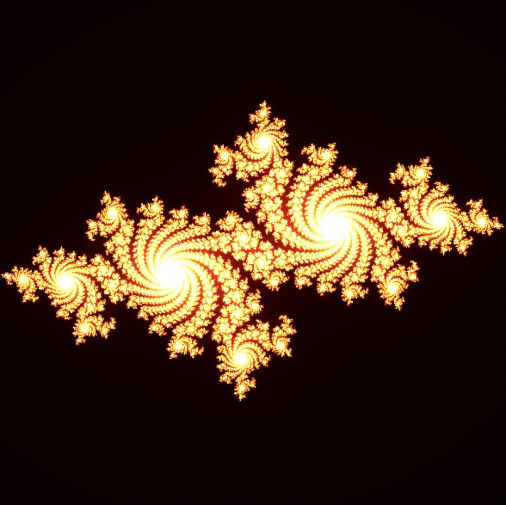 - 複雑な形状:ジュリア集合は非常に複雑な形状を持ちます。拡大しても同じようなパターンが現れる自己相似性が特徴的。
