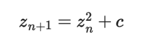 - 次の式を反復的に適用する。この漸化式はマンデルブロ集合と同じです。