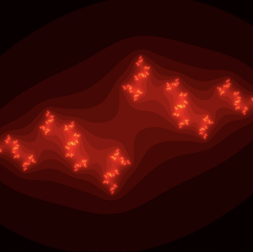 - この反復操作をすべての初期値z0に対して行い、結果として得られる集合がジュリア集合となります。(マンデルブロ集合は、初期値をz0=0と固定し、複素数cを変動させますが、ジュリア集合はその逆で、複素数cを固定し、初期値z0を動かします。そのため、ジュリア集合はcによって形が変わるという点が魅力的です。)