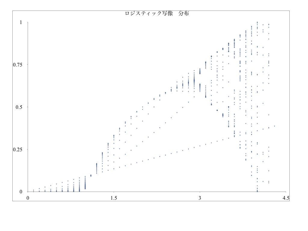自然界での生物の個体数を表すモデルとして提示されるのがロジスティック写像です。