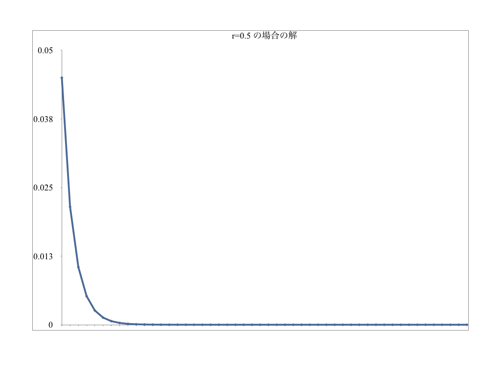 r=0.5の場合は、個体数がゼロになってしまいます。つまり、絶滅ルートです。