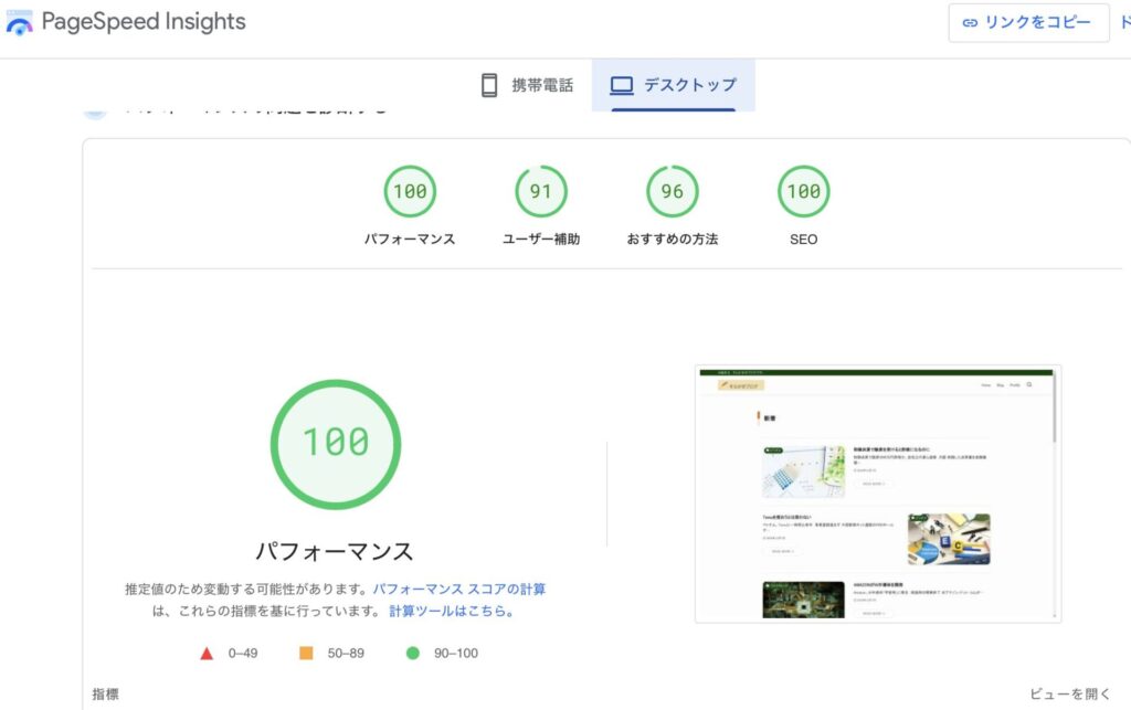 このサイトの現在のパフォーマンス 2026 1/24 ブログ運営 2024年12月7日2026年1月24日 Screenshot Screenshot 素晴らしいパフォーマンスです。 このサイトは、WordPressのテーマ(SWELL)を使用しています。運用が安定しており、とても使いやすいと思います。有料ですが、購入する価値はあると思います。 ブログ運営