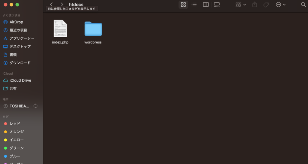 ダウンロードしたら、ダウンロードフォルダから、アプリケーションフォルダのMAMP>htdocフォルダにフォルダごと放り込みます。フォルダ名は好きなものに変えておきます。