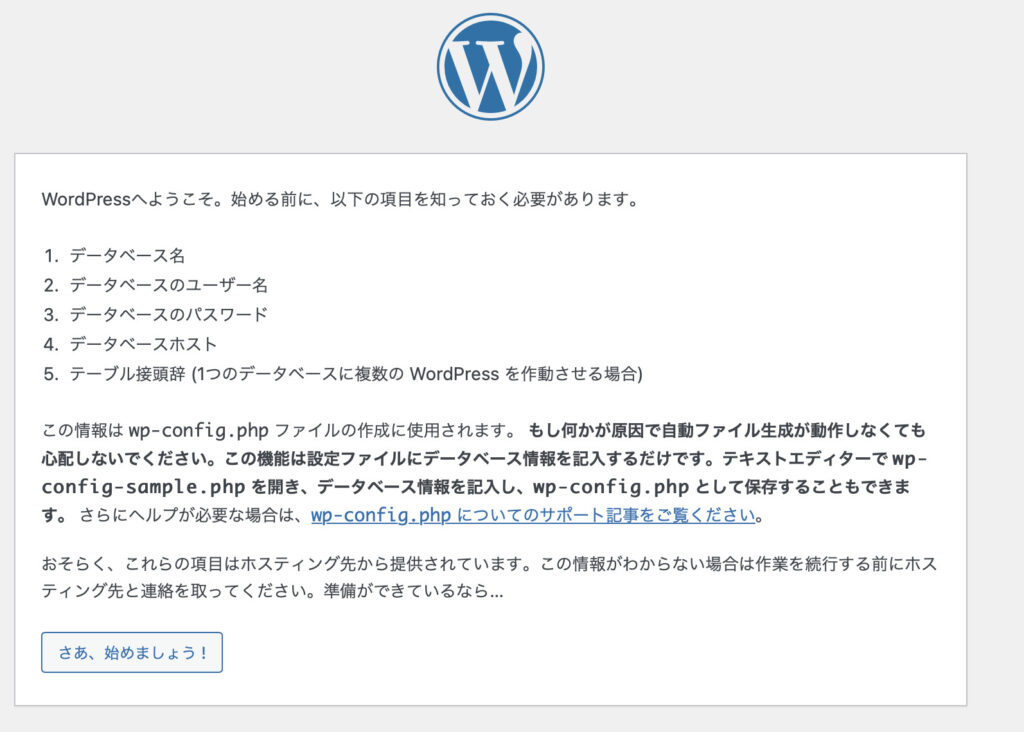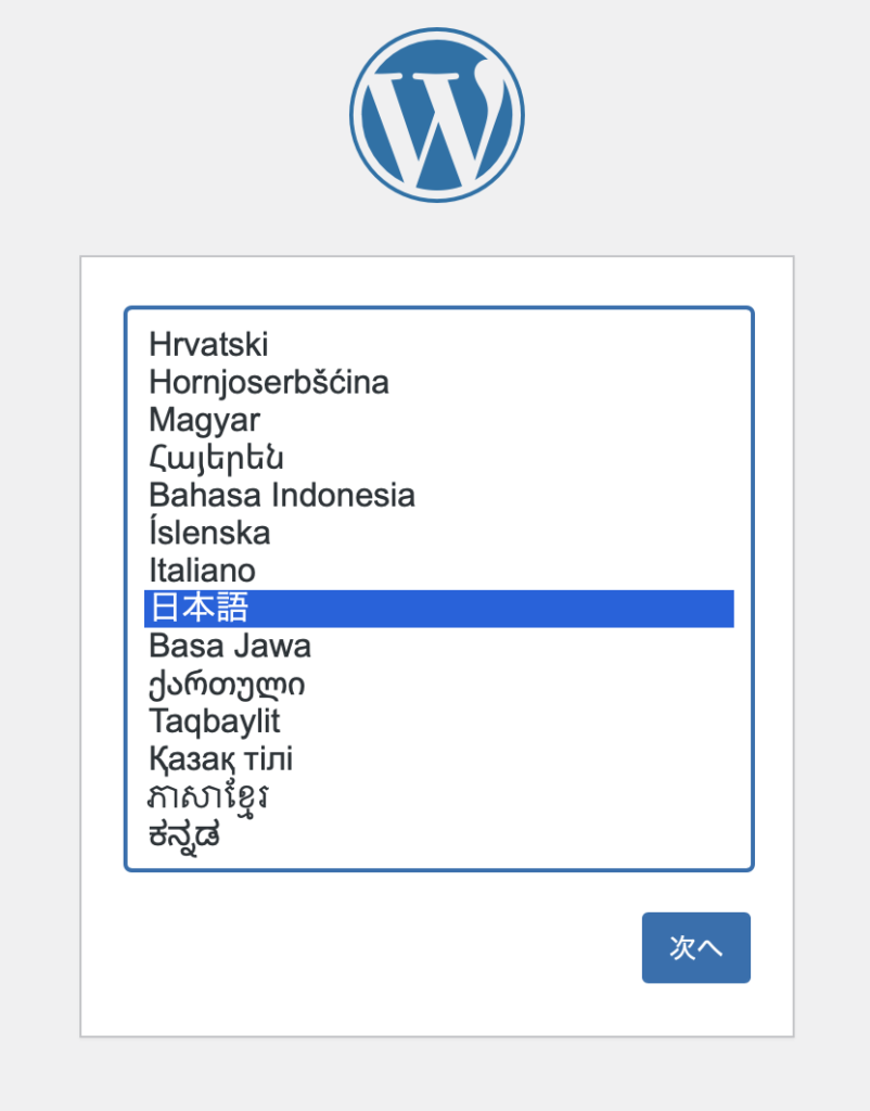 Webブラウザを立ち上げて、「http://localhost:8888/wordpress/」と打ち込むと(「wordpress」部分は、フォルダ名を変更した場合にはそのフォルダ名に修正してください)、インストール画面になりますので、必要な情報を入力していきます。