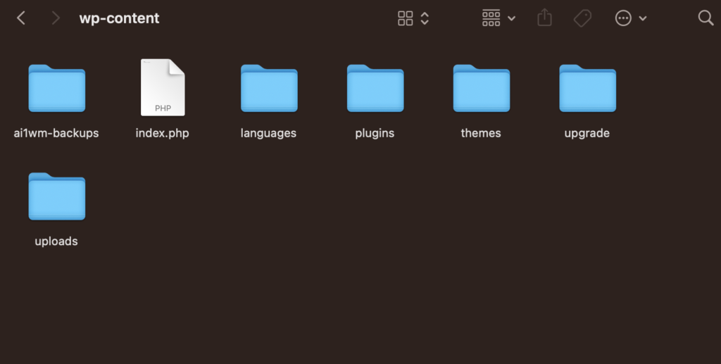 MAMP>hotdogs>wordpress(自分のローカル環境名)>wp-contentフォルダを開くと、それぞれにフォルダが出てきますので、ここに、BackWPupでダウンロードしたファイルから、該当するフォルダをコピーして上書きしてしまえばOKです。上書きするのは、「plugins」「themes」「uploads」です。